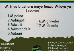 Hii ndio aina ya miti inayo limwa ndani ya Halmashauri ya Wilaya ya Ludewa na inayo stawi kwa wingi ndani ya Wilaya ya Ludewa, karibu kwa uwekezaji katika sekta ya kilimo cha mazao ya chakula na zao l...